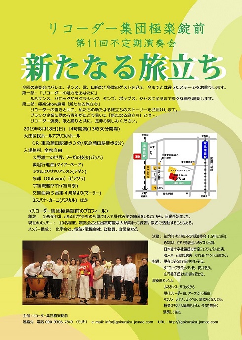 今回の極楽錠前演奏会はバレエ、ダンス、口笛など多数のゲストを迎え、今までとは違ったステージをお贈りします。
