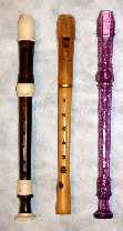 ソプラノ 写真は左からヤマハ(木目)、メック(合奏用、メープル)ヤマハ(紫スケルトン) スケルトンはちょっと枯れた感じの音がする。主にヤマハの木目使用。メックは25年前に19,000円で購入。 最近、モーレンハウエルのドリームリコーダーも導入した。写真をクリックすると、大きな写真が見られます。 |